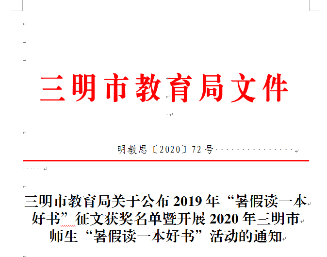 喜报| 华体会(中国)在2019年三明市“暑假读一本好书”征文活动中获佳绩