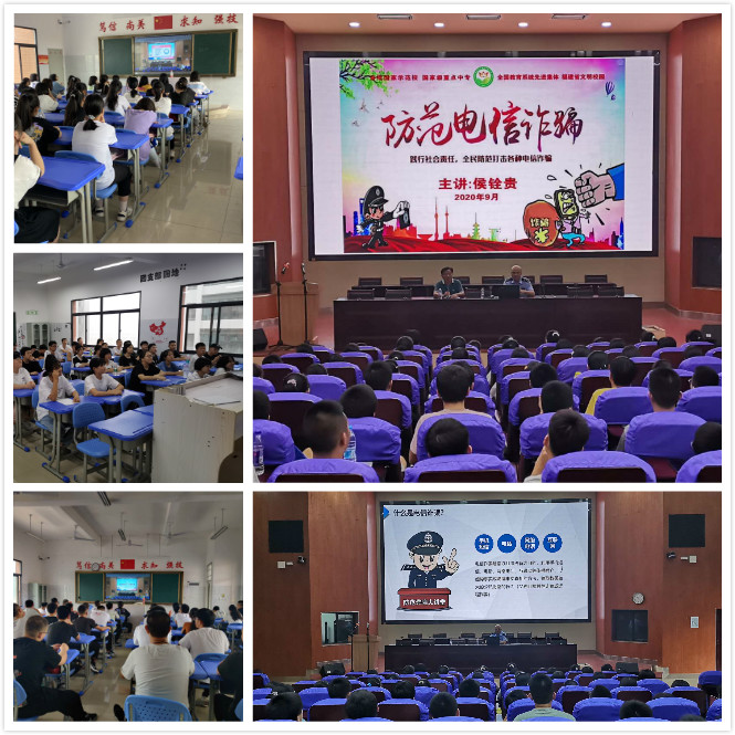 为贯彻省、市、县进一步做好“平安建设”宣传工作,有效推进平安建设工作,为提高全体师生防范电信网络诈骗的意识和能力,有效保护校园师生财产安全,三明市农业学校于9月8日开展预防电信(网络)诈骗宣传知识讲座。讲座由综治副校长侯铨贵警官主讲,保卫处陈兆华主任主持,主会场设立在学校报告厅,各班级通过班班通观看学习。