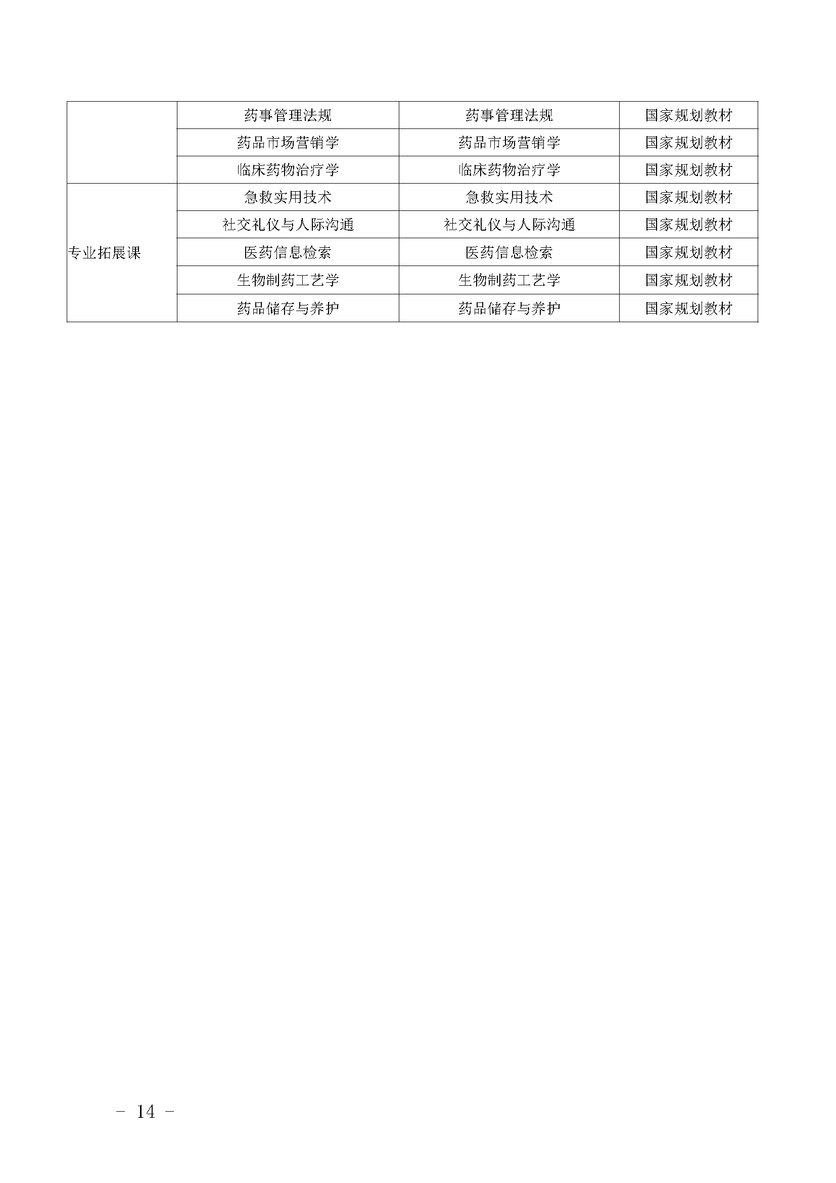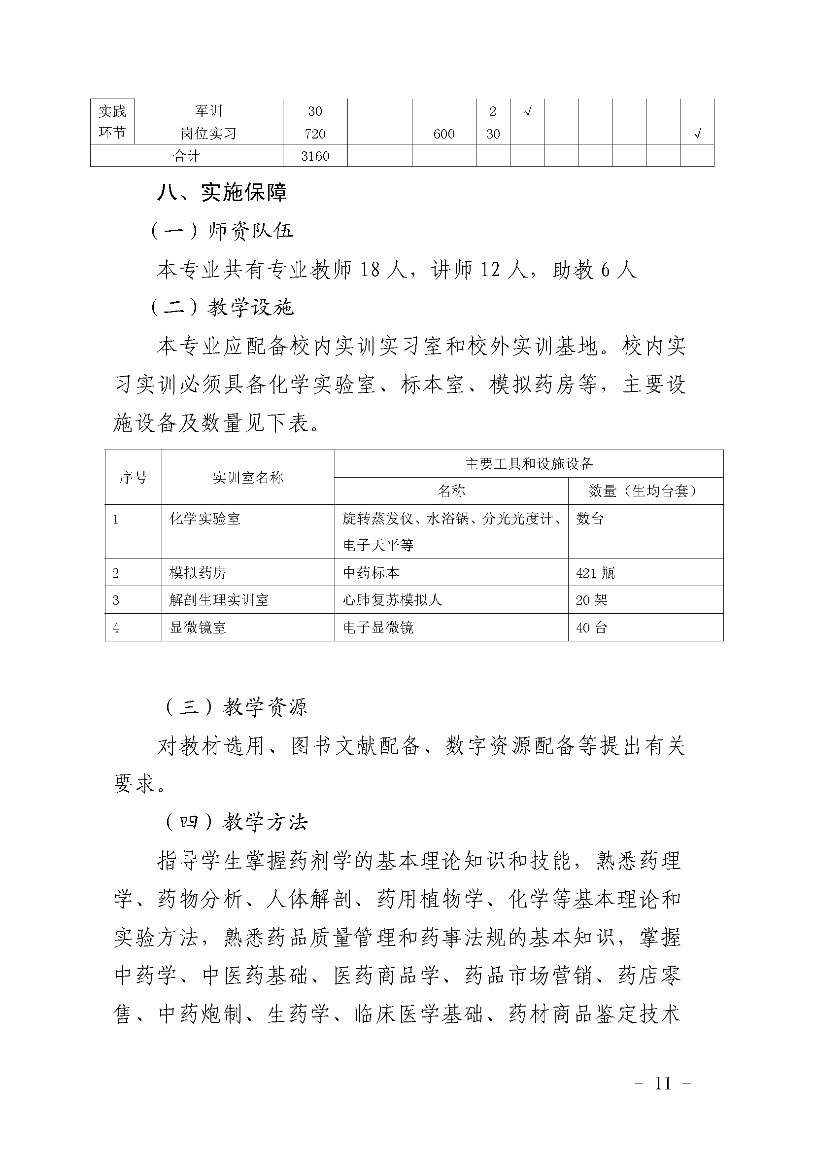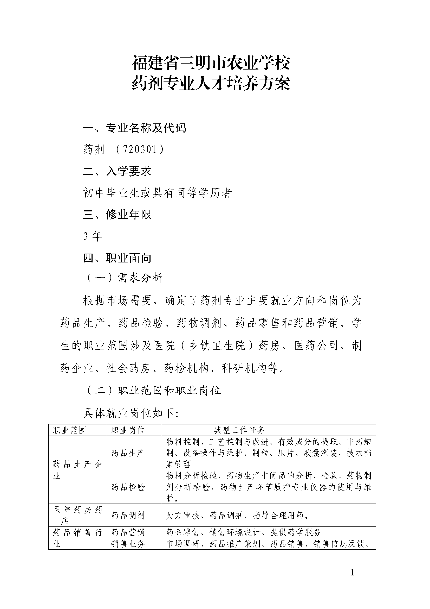 三明市农业学校药剂专业人才培养方案(2023)