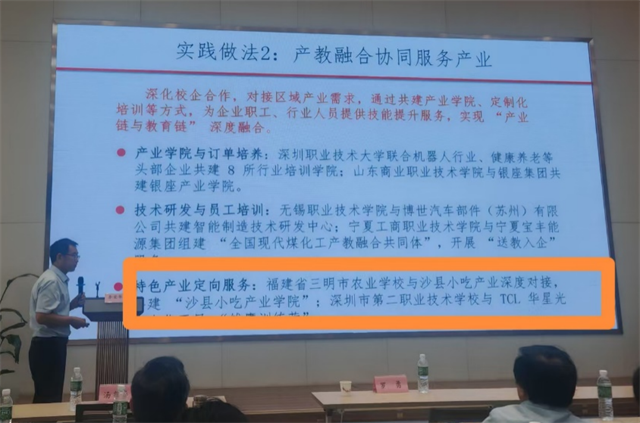 会上,华体会(中国)党委委员、副校长谢阳军作了题为《“五位一体”助力“沙县小吃”特色富民产业发展》的典型案例分享,介绍了学校以专业建设为本,以服务为宗旨,通过小吃培训、学历教育、技术援助、资源搭建、节庆活动五大途径,深度服务特色富民产业发展,形成“五位一体”服务模式的具体做法和成效。该案例曾入选2024年福建省职业教育改革发展服务乡村振兴典型案例,并通过中国成人教育协会评审,入选《职业院校服务全民终身学习案例百选》。