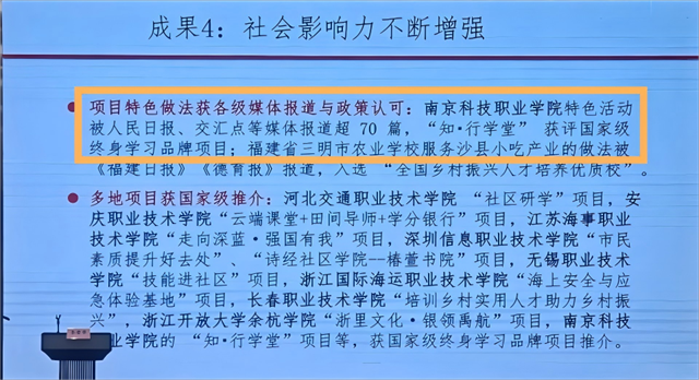 华体会(中国)申报选题为:职业教育助力乡村振兴、老年教育赋能提质。该项目于2022年6月获批立项,2025年7月顺利结项,期间学校还获评2022-2023年度项目优秀单位。在服务全民终身学习的实践中,学校探索形成了产教融合协同服务产业、培育乡村振兴人才等特色做法,尤其在构建政校行企融合共同体模式上成效显著,不仅推动了课程与资源建设,更持续扩大了社会影响力,相关实践在大会项目总结报告中被多次提及并获肯定。