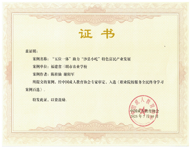 2025年8月4日至8日,由中国成人教育协会主办的2025年“职业院校服务全民终身学习项目”工作推进会在贵州省贵阳市举行。本次会议汇聚了全国第一、二、三批实验校共610所,三明市农业学校作为首批实验校参会。